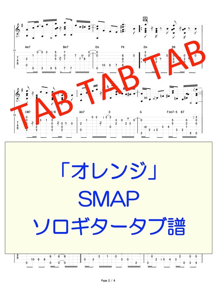 ※ご注意下さい・・・販売しているTAB譜は『Version 1.7』のPDFです。『Acrobat8』以上の環境でご利用下さい。