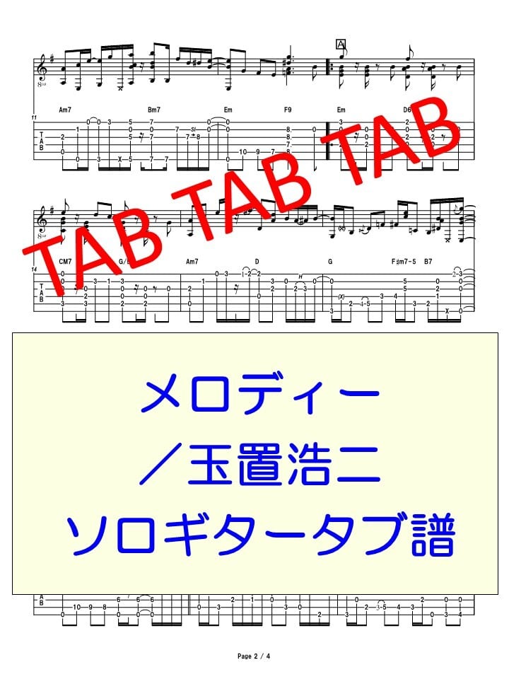 ※ご注意下さい・・・販売しているTAB譜は『Version 1.7』のPDFです。『Acrobat8』以上の環境でご利用下さい。