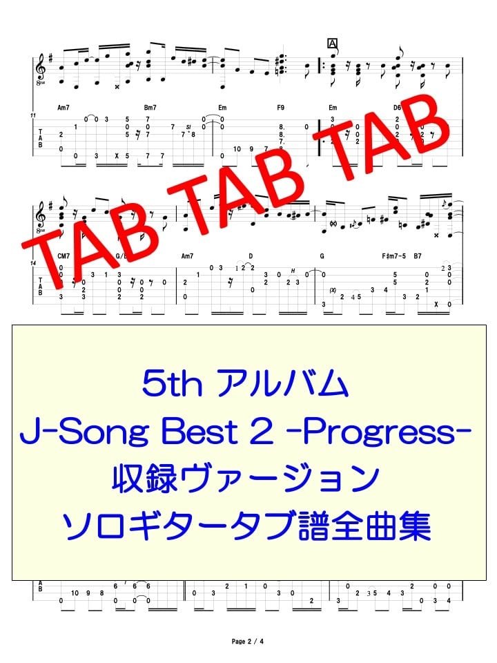 龍藏Ryuzo 5th Album 「Acoustic Solo J-Song Best 2 -Progress-」の全曲TAB譜集Digital版です。